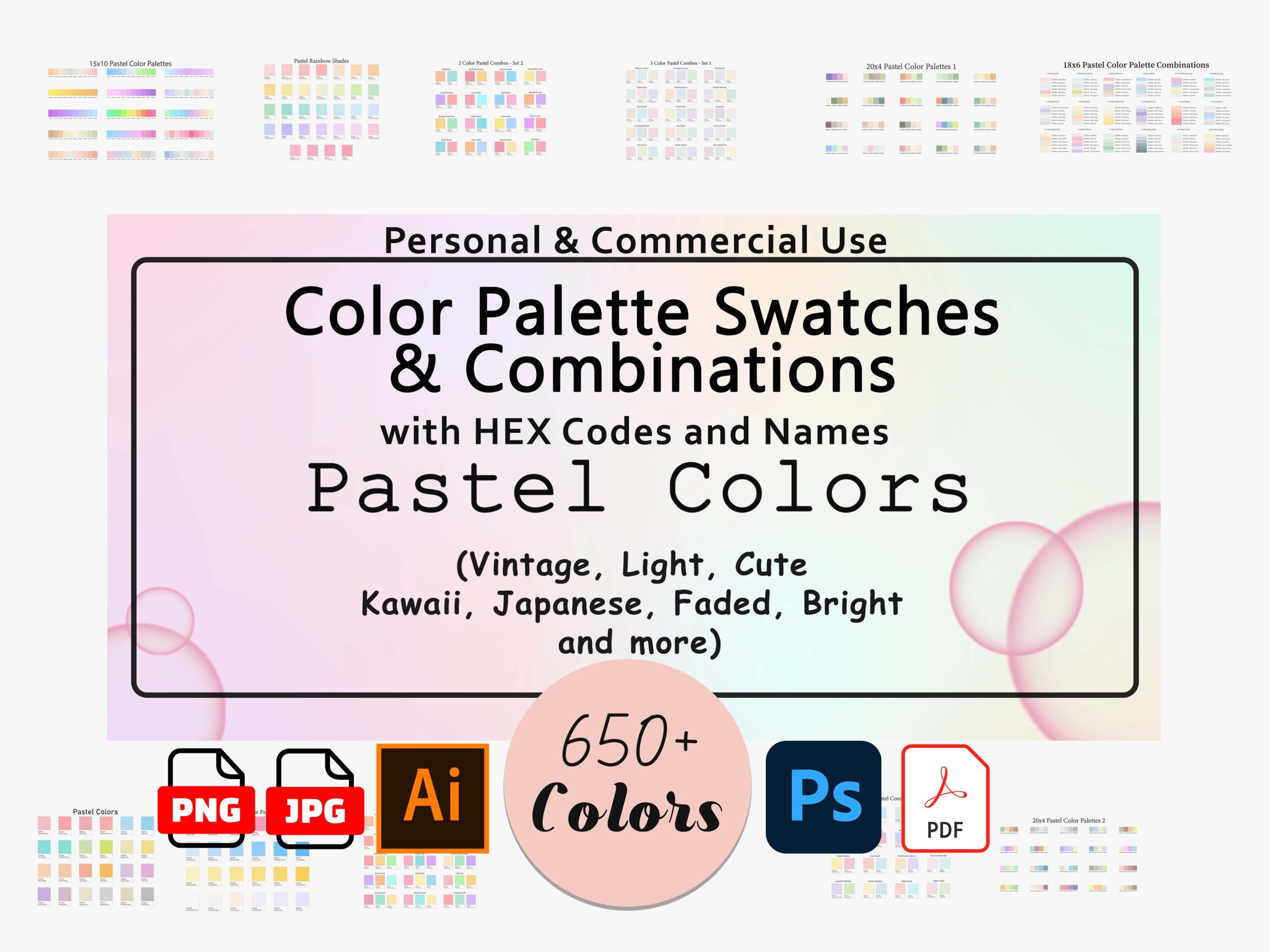 650+ Shades of Colorful Pastel – Digital Illustrator Swatches, Chart & Guide